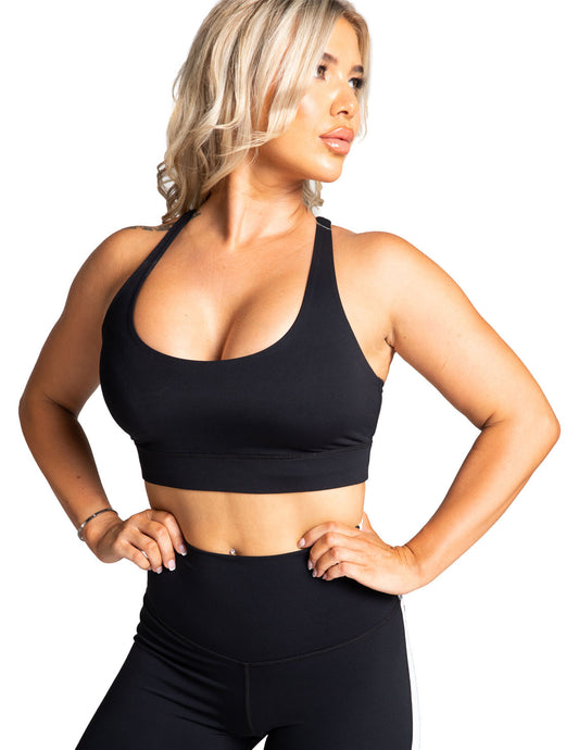 Sports Bra with Hook-and-Eye Closure, Medium to High Support, Black