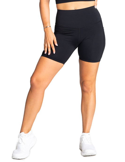 Power High-Waist Biker Shorts with Stripes, Black/White