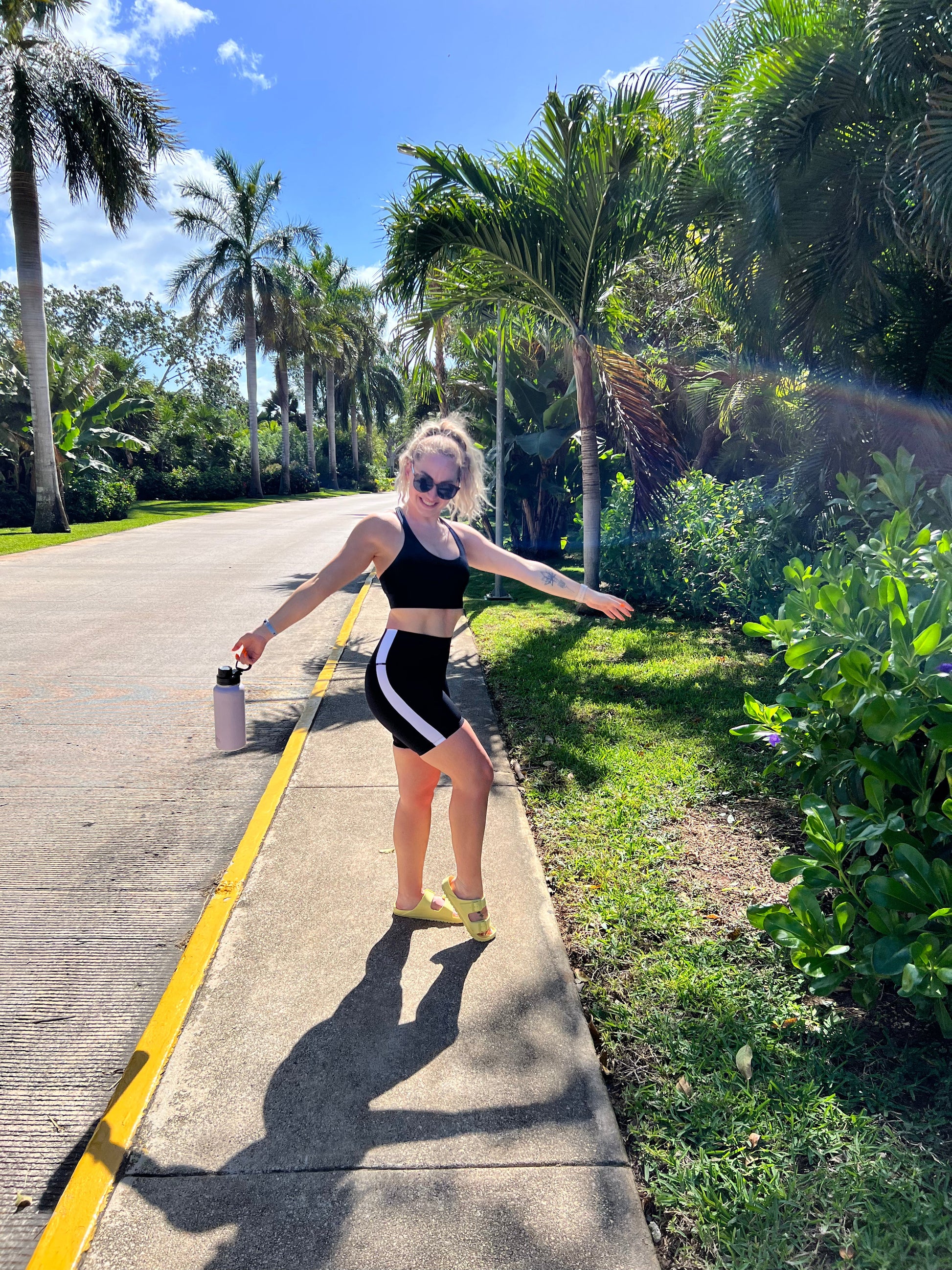Power High-Waist Biker Shorts with Stripes, Black/White
